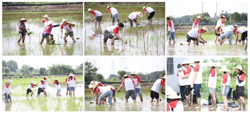 在合作社工作人员的指导下,师生们一起将秧苗插入大家提前绘制成的图案中。左手出秧,右手插秧,整个过程看似简单,实际操作起来却没有那么容易。不一会大家便开始汗流浃背,手上和脚上也沾满泥巴,有人因为之前没有插秧经验,很快就开始腰酸背疼,但大家都选择了用手臂擦去脸上的汗水,继续弯腰坚持,直至完成图案的绘制。“很辛苦但也很开心,我们竟真的把我们的信仰用自己的双手在稻田里种了出来。”药物化工所研究生党支部书记王卫国自豪地说道。