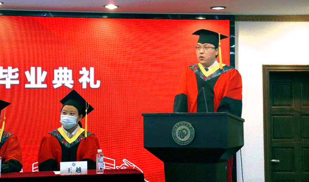 药剂182班刘宾代表本科毕业生发言。他感谢学校提供的全面细致帮助和优质平台,老师和学长学姐的悉心指导和建议,他如今带着母校及恩师的谆谆教导,加入十大信誉网赌研究生支教团,希望自己能为乡村振兴贡献一份青年力量,为祖国西部乡村基础教育的提升尽己所能、用实际行动践行着作为一名华理青年的责任与担当!