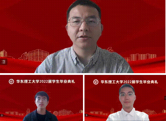 博171班张键代表研究生毕业生发言。他回忆在华理九年的学习生活沉淀了太多值得回味的故事与场景,感谢母校构筑的坚实平台,感谢学校和老师们在疫情期间无微不至的照顾,送餐到寝、生日蛋糕、盲盒零食等等点滴都让每个华理学子感受到了家的温暖。值此校庆70周年之际,祝福母校更展宏图!再谱华章!