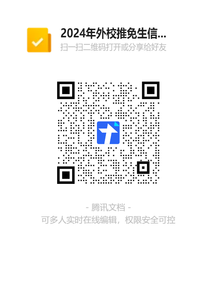考生须于9月23日下午17:00前将资格审查资料电子版、导师有接收意向的邮件或微信截图压缩为一个文件上交。电子版材料通过腾讯文档收集,文档链接收集方式如下: