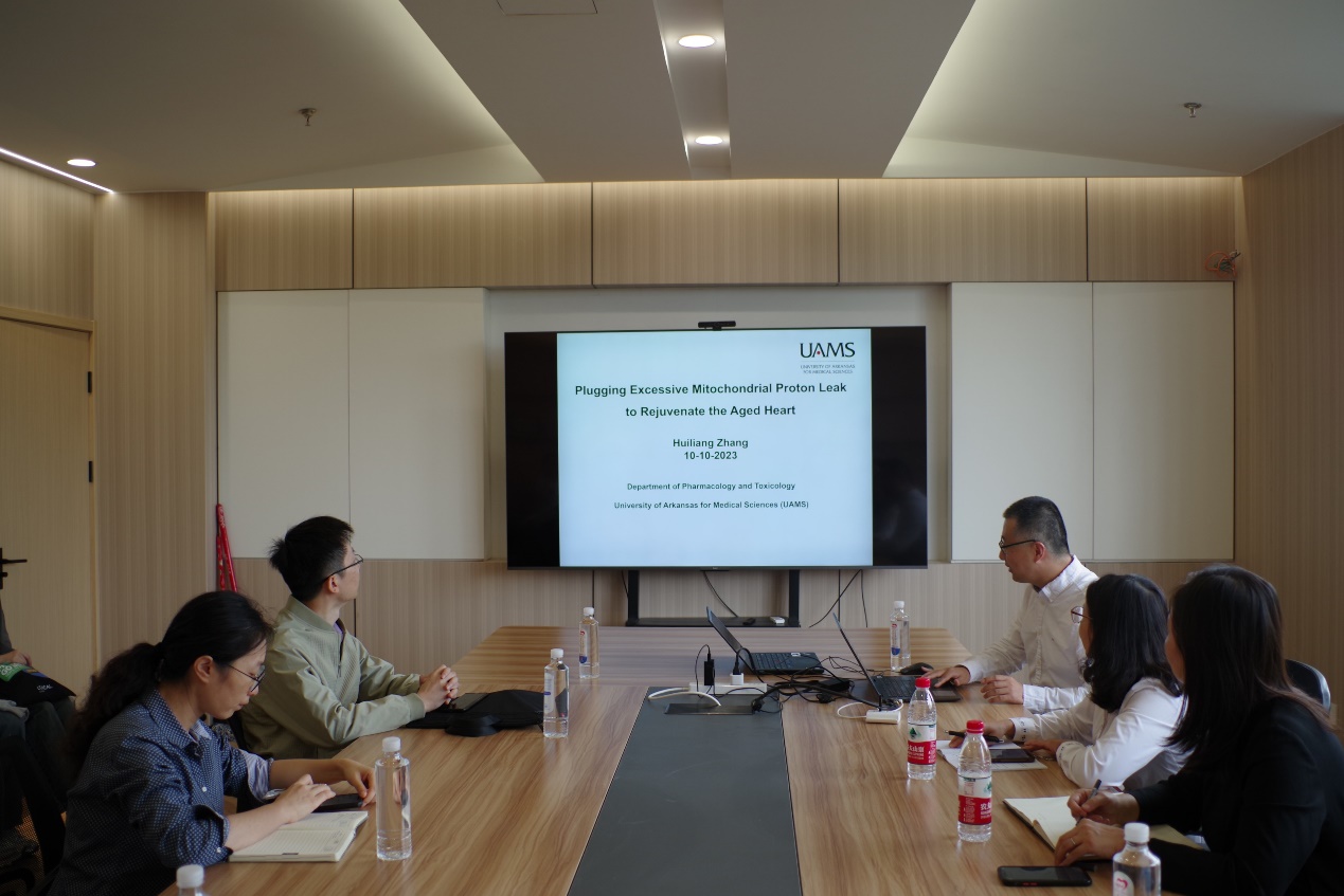 10月10日上午,阿肯色大学医学院药理和毒理学系Tenure-track助理教授,博士生导师张会亮博士到访澳门十大信誉网赌大全,并为我院师生作题为Plugging Excessive Mitochondrial Proton Leak to Rejuvenate the Aged Heart的学术报告。药物科学系黄瑾教授主持了报告会。