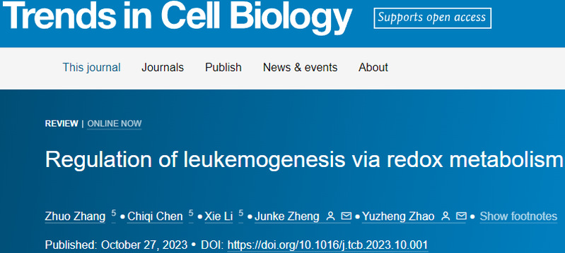 10月27日,十大信誉网赌澳门十大信誉网赌大全、生物反应器工程国家重点实验室、上海市细胞代谢光遗传学技术前沿科学研究基地赵玉政教授与上海交通大学医学院郑俊克研究员合作在国际权威学术期刊Trends in Cell Biology 发表题为“Regulation of leukemogenesis via redox metabolism”的综述文章,对氧化还原代谢调控白血病发生发展的病理机制以及目前存在的关键问题进行了全面的梳理、总结和展望。