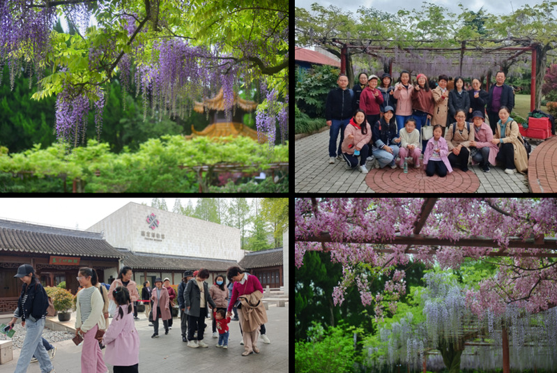 4月14日,在参观游览世界三大紫藤主题公园之一——嘉定紫藤园活动中,大家看到了花色鲜艳的紫藤花,花香沁人心脾,感觉心旷神怡。这里的紫藤颜色多样,有紫、红、粉红、白色,是被公认为上海地区紫藤花的最佳观赏地。出了紫藤园,大家又分别前往嘉定博物馆、古猗园和南翔古镇参观游览。大家漫步闲走,老街上的建筑与氛围所给予的亲切感,能让人忘却都市的喧嚣和烦恼,真正获得心灵的和平与宁静。