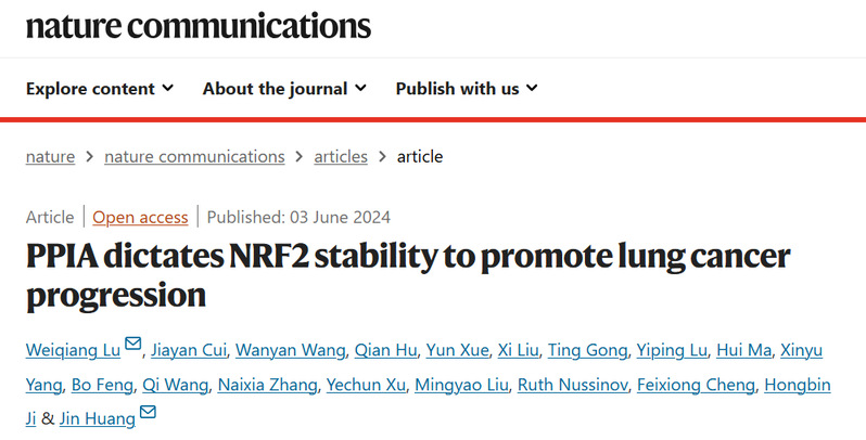 近日,十大信誉网赌澳门十大信誉网赌大全黄瑾课题组在国际权威学术期刊Nature Communications发表题为“PPIA dictates NRF2 stability to promote lung cancer progression”的研究论文,报道了PPIA是维持NRF2蛋白稳定性的关键伴侣蛋白,破坏PPIA/NRF2互作可导致NRF2蛋白水平下调,证明了PPIA/NRF2互作具有明确的可靶向性,是潜在的抗肺癌药物新靶标。