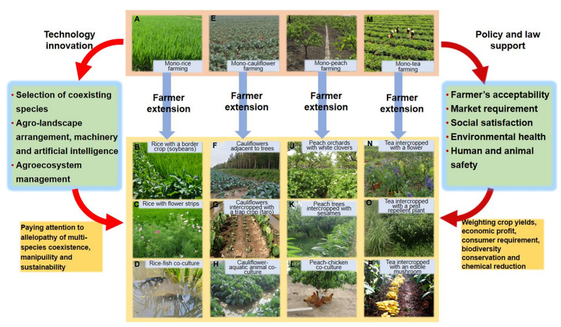 最后,文章倡议,唯有科学家、政府部门、技术推广部门、种植养殖者、企业多方协力,方能将联动链理论更好服务社会、贡献人类、保护地球家园,以促使作物系统产生更安全优质的农产品、最大化的经济效益、更优质的环境质量和更丰富的生物多样性(见图7)。