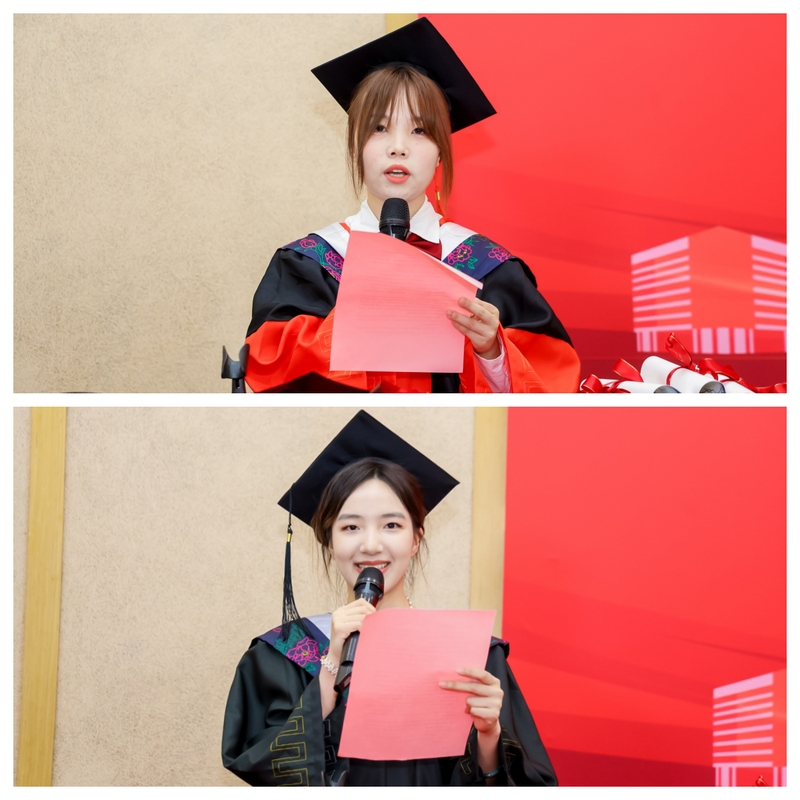 2024届博士研究生汪祎梦、本科生潘诗祺作为毕业生代表发言。汪祎梦同学分享了自己科研探索中的点点滴滴,表达了对母校深深的眷恋与感激之情。未来将继续秉承澳门十大信誉网赌大全的优良传统,不忘初心,继续前行,为我国医药事业的发展贡献自己的力量。潘诗祺同学感谢学院提供的优质教育资源和师长们的辛勤栽培,将带着学院的期望和祝福,勇敢踏上新的征程,祝愿母校繁荣昌盛、蓬勃发展。