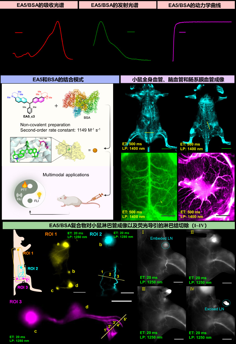 图片说明:BSA/EA5复合物用于小鼠血管和淋巴的近红外二区荧光成像