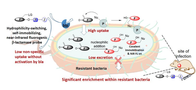 近日,十大信誉网赌澳门十大信誉网赌大全谢贺新教授课题组在活体动物耐药细菌感染荧光成像研究方面取得了重要进展,相关成果以“Highly Sensitive In Vivo Imaging of Bacterial Infections with a Hydrophilicity-Switching, Self-Immobilizing, Near-Infrared Fluorogenic β-Lactamase Probe Enriched within Bacteria”为题发表于Advanced Science。