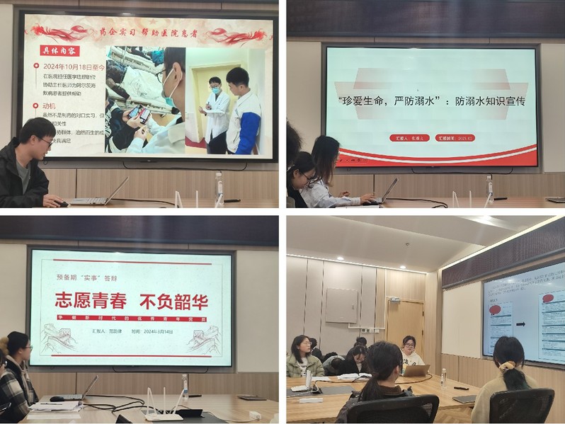 预备党员同学分别汇报了他们在支部建设、社区服务、专业实习、科普宣讲等方面的实践情况,分享感悟和思想收获。