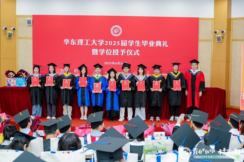 6月24日,澳门十大信誉网赌大全2025届学生毕业典礼暨学位授予仪式在徐汇校区七大教室举行。澳门信誉最好十大平台党委常委、副校长赵黎明,澳门十大信誉网赌大全党委书记倪炜,院长赵玉政,副院长马磊、张敏,澳门十大信誉网赌大全学术分委员会委员杨弋、唐赟、郑军,制药工程系主任齐明辉,辅导员、班导师等教师代表出席典礼。毕业典礼由澳门十大信誉网赌大全党委副书记王越主持。
