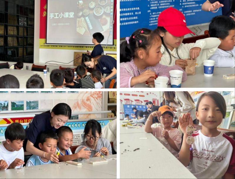 知识的热度尚未消散,课堂随即转变为充满科学趣味与创造力的实践工坊。在两校实践队员的共同指导下,孩子们通过亲手触摸、嗅闻五味药材,沉浸式感受中草药的魅力,并用心制作了承载祝福的香囊。同时,孩子们以云母贝壳为画布,草药为彩笔,创作出兼具美感与清音的独特草药风铃。这些寓教于乐的手工实践,巧妙地将药学知识融入其中,有效激发了孩子们探索科学的热情和动手创造的潜能。